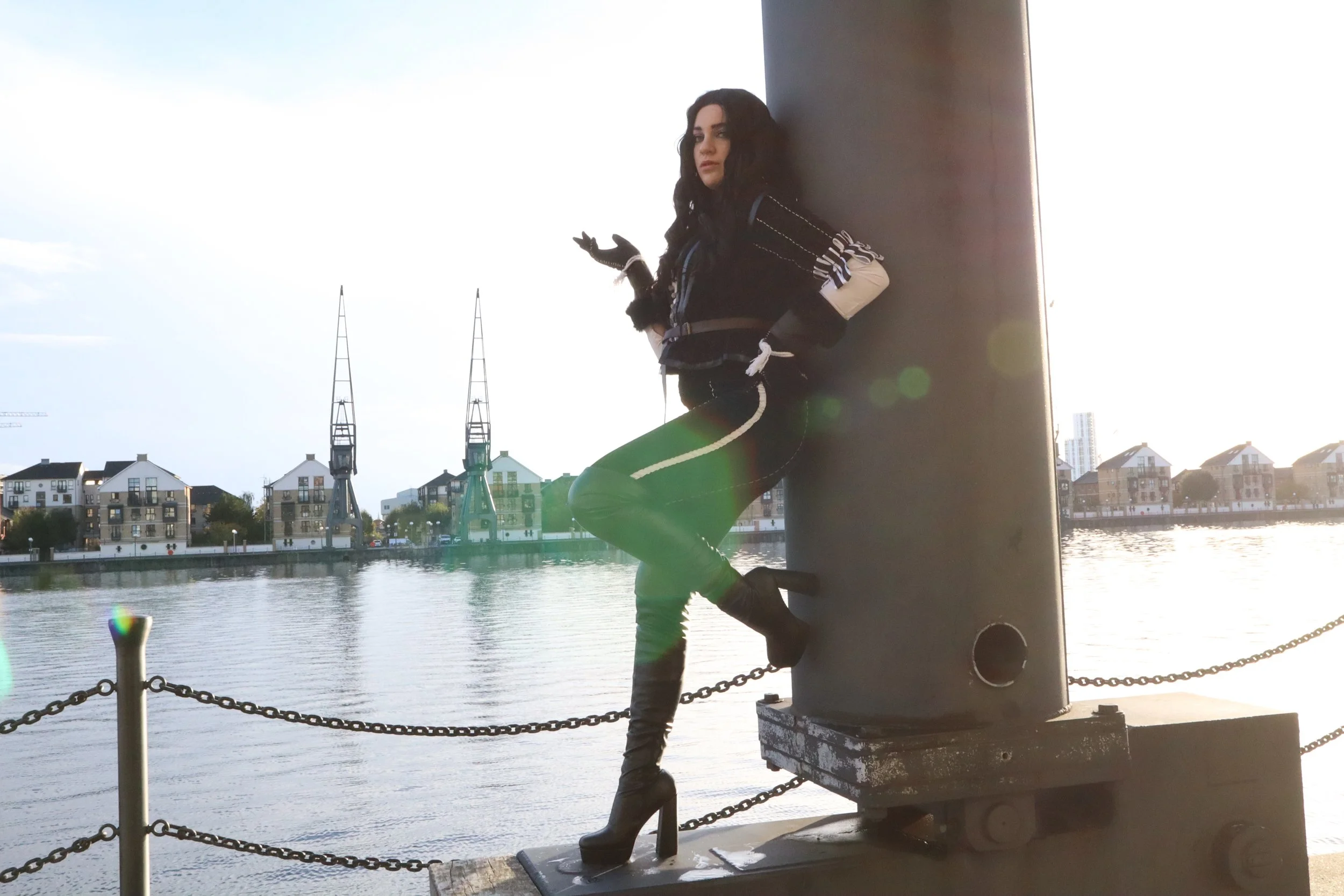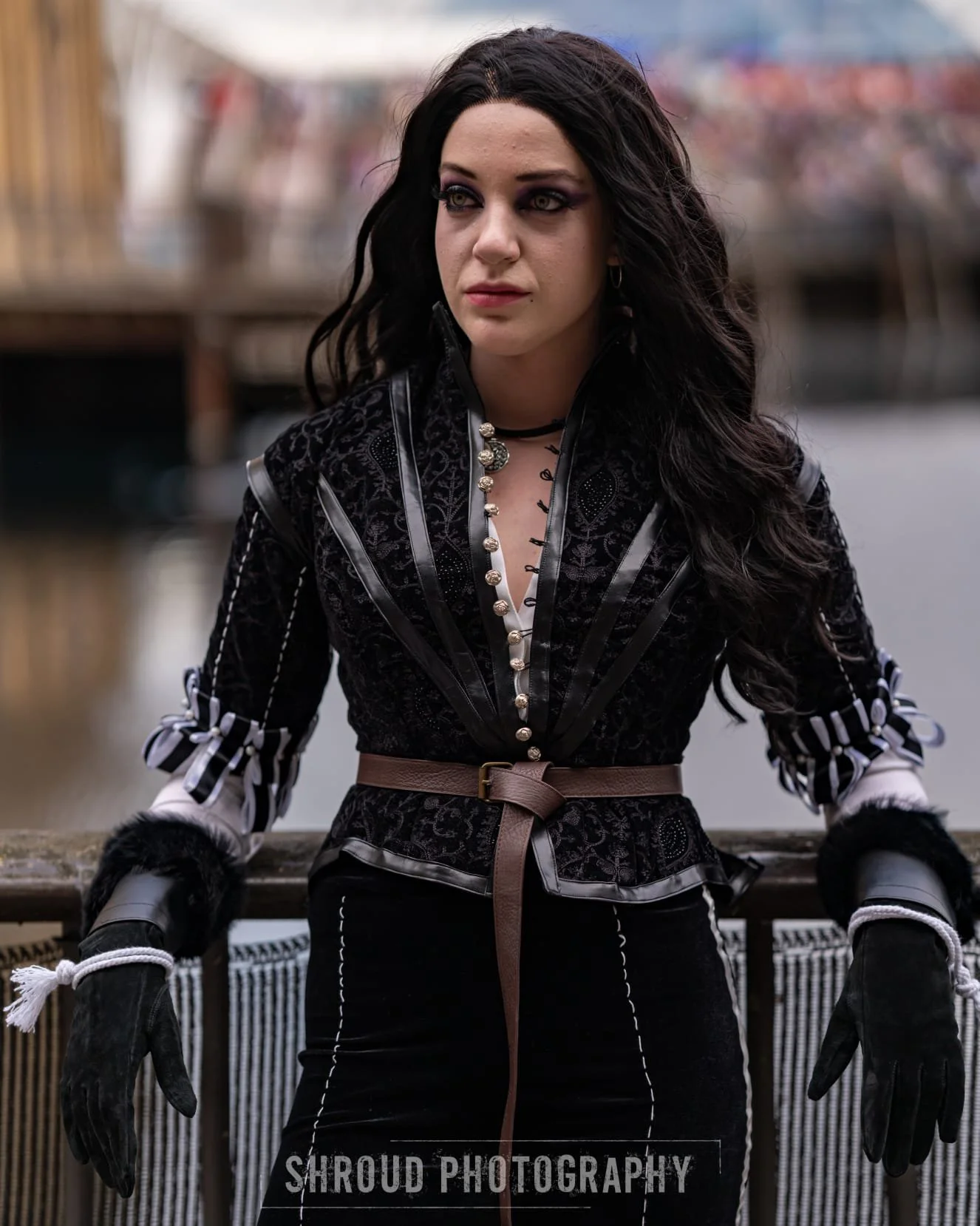 This is my biggest cosplay project to date. A screen-accurate recreation of the clothing of Yennefer of Vengerberg in the Witcher 3: Wild Hunt. The bodice is based on a Victorian bodice pattern. All the white stitching is done by hand as were the ribbons. The gloves are made from real suede and recycled fur.